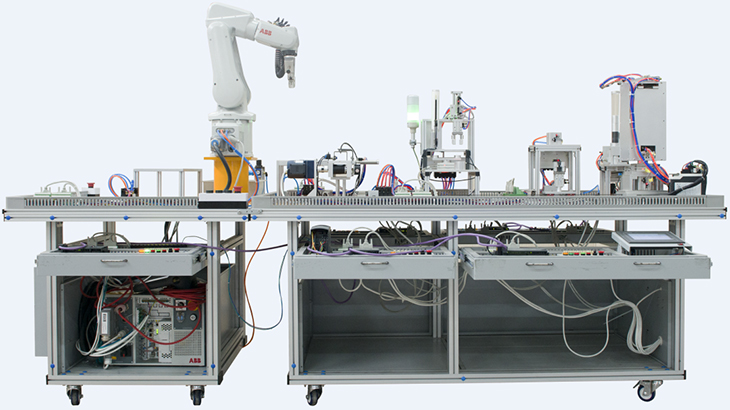 工業(yè)機(jī)器人循環(huán)生產(chǎn)線(xiàn)實(shí)訓(xùn)裝備,工業(yè)機(jī)器人智能生產(chǎn)線(xiàn)實(shí)訓(xùn)系統(tǒng)以工業(yè)化現(xiàn)場(chǎng)真應(yīng)用作為教學(xué)藍(lán)本,采用多種型式、多種規(guī)格、多種應(yīng)用組合成型的工業(yè)應(yīng)用生產(chǎn)線(xiàn)。主要以體現(xiàn)工業(yè)機(jī)器人典型應(yīng)用,讓學(xué)生撐握真實(shí)工業(yè)機(jī)器人現(xiàn)場(chǎng)應(yīng)用方法。通過(guò)以工業(yè)現(xiàn)場(chǎng)真實(shí)應(yīng)用案例實(shí)訓(xùn),縮短教學(xué)實(shí)訓(xùn)與工廠(chǎng)崗位應(yīng)用的差距。