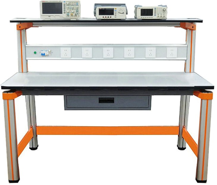 (三)實(shí)訓(xùn)桌結(jié)構(gòu):實(shí)訓(xùn)桌規(guī)格為1600(長(zhǎng))*700(寬)*1300(高),設(shè)有一個(gè)抽屜;實(shí)訓(xùn)桌主體結(jié)構(gòu)全部采用高性能表面氧化的鋁型材及一次成型鋁壓鑄框架連接構(gòu)件,連接構(gòu)件采用壓鑄成型工藝(非焊接工藝),經(jīng)機(jī)加工、拋丸、噴砂,表面靜電噴涂工藝,安裝方便、快捷,用戶(hù)可自行DIY組裝。桌體立柱采用工業(yè)鋁型材成型工藝,表面氧化處理,截面尺寸:70mm×70mm,四面帶槽,槽寬約8mm,端部裝有注塑成型配套塑料堵頭。桌面采用25mmE1級(jí)三聚氰胺飾面板,桌面板下設(shè)支撐框架,承受力不少于200kg。配備儲(chǔ)存柜,存放元件及工具,儲(chǔ)存柜底部4只高強(qiáng)度萬(wàn)向可制動(dòng)PU腳輪,方便移動(dòng)。實(shí)訓(xùn)裝置整體簡(jiǎn)約不簡(jiǎn)單,高端大氣,符合現(xiàn)代化產(chǎn)品審美和發(fā)展趨勢(shì)。