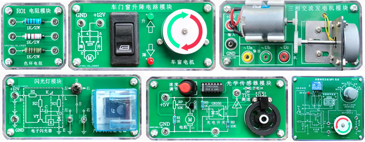 汽車電工電子實(shí)訓(xùn)模塊由透明封閉元件盒及PCB板構(gòu)成。元件盒體由透明有機(jī)工程塑料注塑而成,具有示教功能,使用者能夠觀察到元件形狀和接線方式,有利于教師講解和學(xué)生認(rèn)識(shí);面板采用PCB制作而成,表面清爽、符號(hào)線路清晰、元件更換容易。