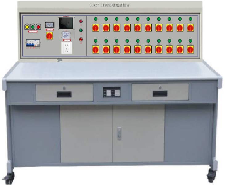電源總控臺便于實驗管理員對每個學生臺電源進行集中管理,三相電源到每臺實驗臺前,須受指導教員獨立控制(可采用開關(guān)接觸器或手動轉(zhuǎn)換等方式),實驗用電與電網(wǎng)設有開關(guān)控制。