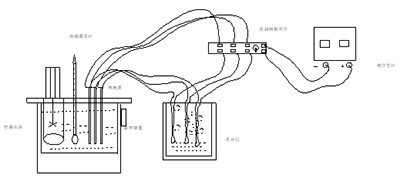 熱電偶實(shí)驗(yàn)裝置主要由恒溫水浴、電位差計(jì)、熱電偶、熱電阻、冰點(diǎn)儀、數(shù)據(jù)采集裝置、低電勢(shì)轉(zhuǎn)換開關(guān)和標(biāo)準(zhǔn)玻璃溫度計(jì)等組成。恒溫水浴上具有攪拌、加熱與溫度控制裝置,可根據(jù)要求將溫度穩(wěn)定在設(shè)定值附近。采用標(biāo)準(zhǔn)玻璃溫度計(jì)測(cè)量的溫度作為標(biāo)準(zhǔn)溫度,用于校準(zhǔn)熱電偶和熱電阻。
