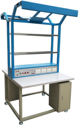 實(shí)訓(xùn)臺上提供日光燈(用于照明)2個,透明的PVC板4個,可夾放原理圖等資料,另外還配備三芯雙聯(lián)暗插座4個、兩芯暗插座2個、工具柜2個,工作臺面設(shè)有綠色防靜電桌墊,整個裝配線安全可靠。
