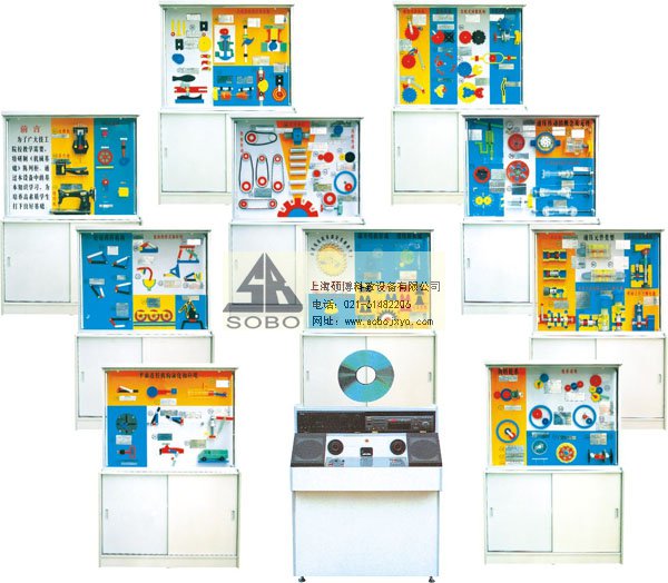 機械基礎(chǔ)陳列柜是根據(jù)大中專院校、職業(yè)學(xué)校的教學(xué)大綱設(shè)計的機械陳列柜,《機械基礎(chǔ)》電化教學(xué)設(shè)備?偣10個柜及1個控制臺,用CD光盤解說遙控控制,聲控同步進行演示機械模型。通過演示可加強對機械專業(yè)學(xué)生的理論學(xué)習(xí)、使用范圍增強認(rèn)識,加深理解,是機械專業(yè)系不可缺少的理想教具設(shè)備。