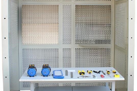 (2)使用網(wǎng)孔板加木制安裝板結(jié)構(gòu)進(jìn)行安裝,木板安裝在網(wǎng)孔板上,完全符合世界技能大賽所使用設(shè)備;特點(diǎn):a、設(shè)備完全符合建筑學(xué)標(biāo)準(zhǔn);b、使用木板讓學(xué)生更貼近墻面安裝;c、網(wǎng)孔板結(jié)構(gòu)增加了設(shè)備的靈活性,方便在競(jìng)賽之后的實(shí)訓(xùn)教學(xué),降低后續(xù)的使用成本;d、房間采用敞開式結(jié)構(gòu),使學(xué)生能在這個(gè)立體空間內(nèi)方便的完成不同線路的安裝,掌握各項(xiàng)安裝技術(shù);e、為便于訓(xùn)練和模擬測(cè)試,采用網(wǎng)孔板和模板雙層結(jié)構(gòu),訓(xùn)練時(shí)使用網(wǎng)孔板訓(xùn)練,可重復(fù)使用,操作方便;技能考核時(shí)使用木板,可模擬真實(shí)競(jìng)賽環(huán)境。