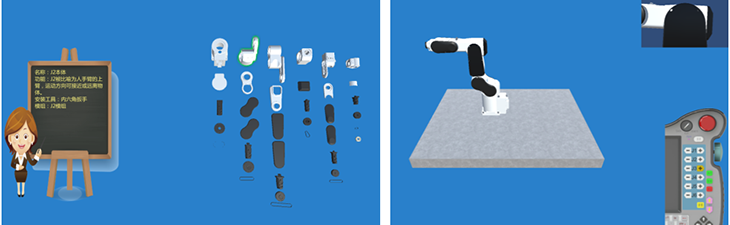 平臺配套提供三維拆裝軟件(RobotAC),3D真實重現(xiàn)了機(jī)器人本體拆裝與電氣維護(hù)平臺功能。RobotAC可完成大部分硬件平臺上的實訓(xùn)項目。