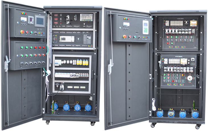 2.電氣控制線路元器件都裝在電氣柜內(nèi)部,配有布線槽、接線端子;通過(guò)端子學(xué)生可自行接線、布線,構(gòu)建控制系統(tǒng),實(shí)訓(xùn)特點(diǎn)明顯,同時(shí)具有一定的擴(kuò)展性;
