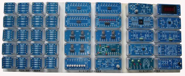 提供一套實訓(xùn)模塊,可以完成直流電路、模擬電子技術(shù)、數(shù)字電子技術(shù)和電子綜合應(yīng)用實訓(xùn)項目。實訓(xùn)模塊面板采用PCB板制作而成,器件和信號接口均已引至板上的專用插座,實訓(xùn)模塊有四個彈性插腳,與專用實訓(xùn)孔板配套使用。