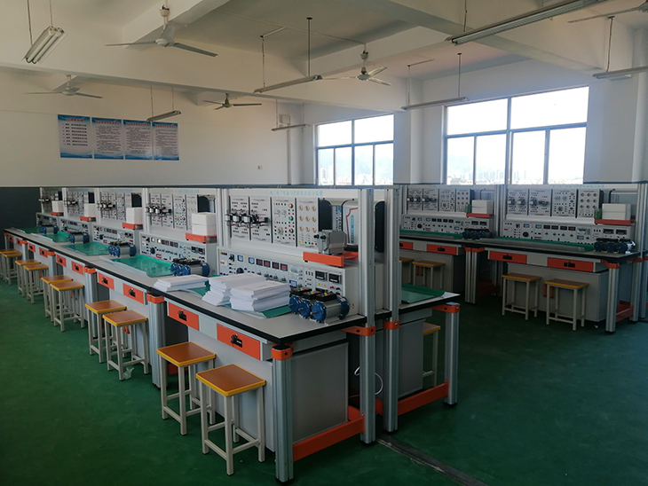 電工電子技能綜合實訓裝置由實驗主機箱、儀器架、實訓桌、移動矮柜、電工電子實訓套件、學生凳等組成。實驗裝置支架與實驗桌可組合、可拆裝。支架與桌腳一體,鋁合金結(jié)構(gòu)。