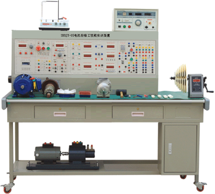 電機檢修工技能實訓裝置采用控制屏結構,測量儀表及電氣線路元器件固定在相應功能塊面板上