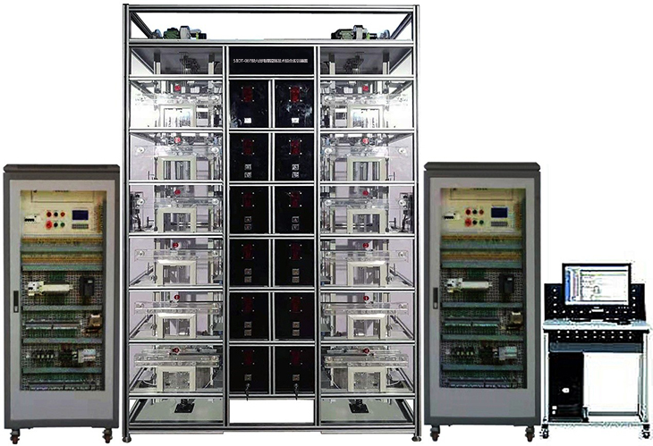 電梯控制技術(shù)綜合實(shí)訓(xùn)裝置是專門為職業(yè)院校開(kāi)設(shè)的電氣自動(dòng)化、機(jī)電一體化、機(jī)械制造與自動(dòng)化等相關(guān)專業(yè)而研制的,裝置根據(jù)智能建筑中升降電梯的機(jī)構(gòu)按照一定的比例縮小設(shè)計(jì),所用設(shè)備、器件與實(shí)際電梯基本一致,采用槽鋼方管框架結(jié)構(gòu)整體設(shè)計(jì),正面使用透明有機(jī)玻璃面板,融低壓電氣、PLC、變頻調(diào)速、智能人機(jī)、傳感檢測(cè)、視頻監(jiān)控、智能考核系統(tǒng)等于一體,實(shí)現(xiàn)智能電梯復(fù)雜的開(kāi)關(guān)量控制、時(shí)序邏輯控制。通過(guò)該裝置的操作訓(xùn)練可考核學(xué)生掌握智能電梯的裝調(diào)與維護(hù)綜合能力,如電梯呼梯盒的安裝、井道信息系統(tǒng)的安裝、平層開(kāi)關(guān)檢測(cè)位置調(diào)整、門機(jī)機(jī)構(gòu)調(diào)整、電氣控制柜的器件安裝、接線、變頻器參數(shù)設(shè)置、PLC編程與調(diào)試、電梯群控功能調(diào)試、電梯故障排除、運(yùn)行維護(hù)等,除了滿足專業(yè)實(shí)訓(xùn)教學(xué),還能開(kāi)展技能考核以及職業(yè)技能競(jìng)賽。