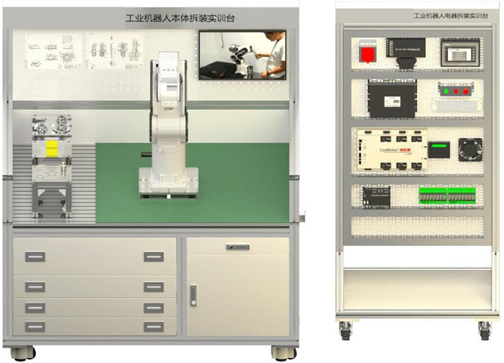 把工業(yè)級的機(jī)器人電氣柜的大部件拆散安裝在網(wǎng)孔架上,清晰體現(xiàn)機(jī)器人電氣連接原理。
