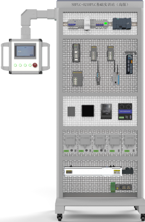 PLC基礎(chǔ)實訓(xùn)站(高級)PLC基礎(chǔ)及運動控制實訓(xùn)平臺集成了高精度伺服和步進運動單元,用于實現(xiàn)精密位置控制,并配備了智能單相電表、智能語音控制模塊、高速交換機等,以實現(xiàn)高效的電力監(jiān)測、語音交互及數(shù)據(jù)通信;物料輸送與檢測模塊包括小型電動機驅(qū)動的傳送帶、變頻器和編碼器,用于物料的自動化輸送與位置檢測;氣動搬運模塊則通過氣缸實現(xiàn)物料的自動搬運與定位;綜合控制模塊以PLC為核心,配以觸摸屏、按鈕指示燈等組件,實現(xiàn)了系統(tǒng)的智能化控制與人機交互。