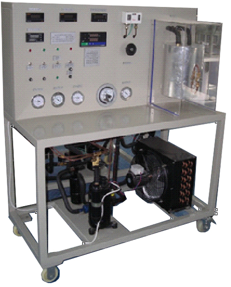 "壓縮機性能試驗臺(電量熱計法)"采用蒸汽壓縮式制冷循環(huán)系統(tǒng),配備制冷壓縮機、不銹鋼冷凝器、蒸發(fā)器等制冷系統(tǒng)真實部件,并設(shè)有彩色控制屏、制冷劑流量調(diào)節(jié)控制器,電子膨脹閥,渦輪流量計、壓力變送器、電壓、電流、功率、合相有功功率、各相無功功率、合相無功功率、各相視在功率、合相視在功率、采集器。不但能開設(shè)制冷壓縮機性能參數(shù)的測定實訓(xùn),還能進行制冷循環(huán)基本原理的演示實訓(xùn)。適用于職業(yè)院校制冷專業(yè)相關(guān)課程的教學(xué)實訓(xùn)。