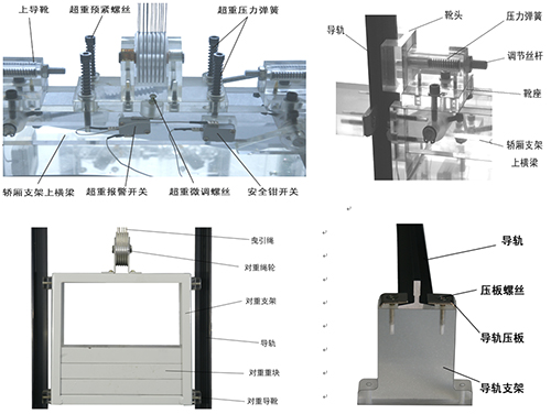 | 8 | 轎廂:12V風(fēng)扇 1只、220V照明燈 1只、門機(jī)裝置 1套、 安全鉗 2對、導(dǎo)靴 4套、超載裝置 1個(gè)、上(下)平層感應(yīng)器 2個(gè)、配重 1塊 | 個(gè) | 1 | 安裝在井道中 |