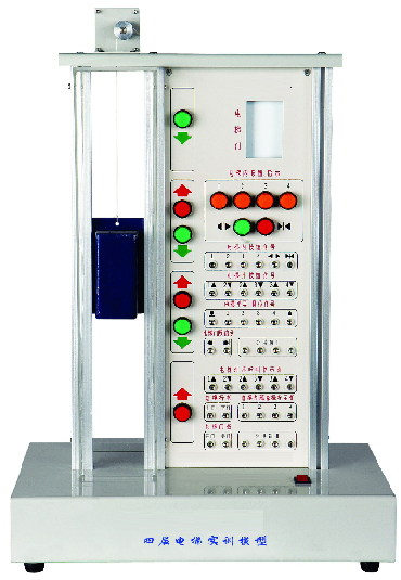 模型為微型實物的四層電梯模型,由底座、上下行轎箱、行程限位機構(gòu)、呼叫指示燈、轎箱門、控制面板、控制電機、傳感器、傳動機構(gòu)等部件組成。相關(guān)控制接口均已引出。