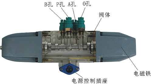 4、使用時應(yīng)注意:P孔為進油孔,O孔為出油孔,A、B油孔接工作油路(如:油缸)。安裝油路時,應(yīng)先拔出油孔內(nèi)的油塞,它用電磁閥通用連接線與電氣控制面板聯(lián)接后進行控制。具有停止,換向I換向II三種工作狀態(tài)。