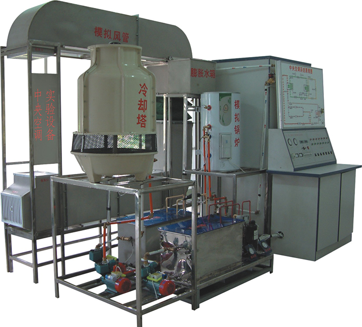 中央空調(diào)實驗設備是將中央空調(diào)微型化,同時保持整個中央空調(diào)系統(tǒng)的完整性和合理性。本實驗系統(tǒng)采用微機控制能單獨演示中央空調(diào)的夏天制冷、冬天制熱循環(huán),控制系統(tǒng)由電腦控制與手動控制二種方法演示。為了解各種參數(shù)的變化情況和系統(tǒng)的工作狀況。實驗臺增加了一些輔導結(jié)構(gòu),使其能人為地制造各種實際中可產(chǎn)生的系統(tǒng)故障,方便學員了解故障的產(chǎn)生和排除故障的方法。