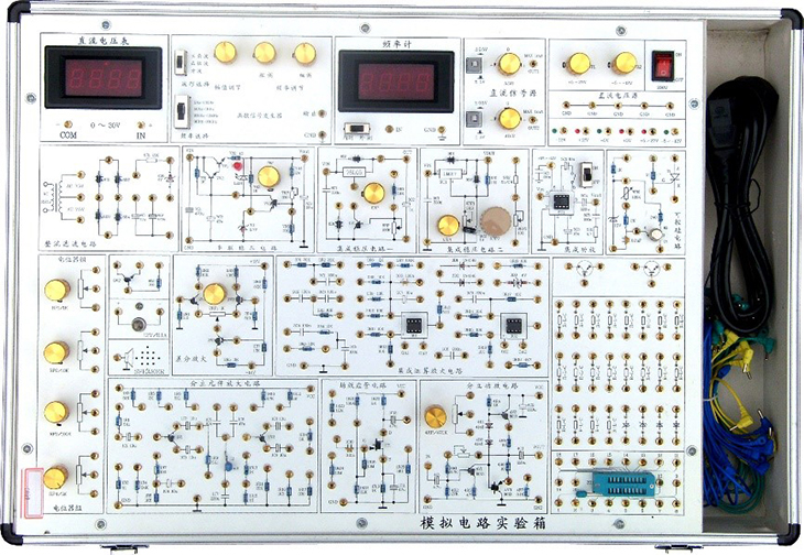 模擬電路實驗箱是根據(jù)《高等工業(yè)學校電子技術基礎》教學大綱中確定的教學實驗要求為基礎,汲取了眾多專業(yè)教師的教學經(jīng)驗,并綜合了眾多同類產(chǎn)品的優(yōu)點而設計的。它函蓋了《模擬電子技術基礎》課程全部實驗內(nèi)容,既為初學者提供了驗證性實驗電路,又為課程設計提供了擴展平臺。