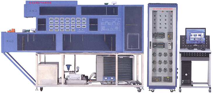 中央空調(diào)全空氣調(diào)節(jié)系統(tǒng)實訓平臺是根據(jù)目前國內(nèi)建筑電氣,樓宇智能化精心設計的綜合實驗裝置,本裝置結合當前安防領域的先進技術,從教學實驗的要求的角度出發(fā),以工程化的設計理念完整的實現(xiàn)了中央空調(diào)全空氣調(diào)節(jié)系統(tǒng)的工作過程。