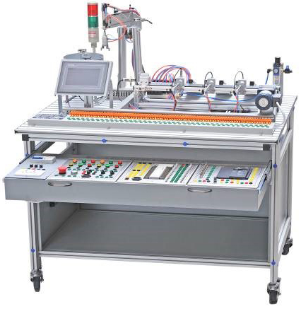 三、功能特點 :光機電一體化實訓設備采用鋁合金導軌式實訓臺,模塊采用標準結構和抽屜式模塊放置架,互換性強;按具有生產性功能和整合學習功能的原則確定模塊內容,使教學或競賽時可方便的選擇需要的模塊。本設備的PLC模塊的I/O 端子、變頻器的接線端子、各常用模塊與PLC的連接端子,均與安全插座連接,使用帶安全插頭的導線進行電路連接;各指令開關、光電開關、傳感器和指示元件的電路,則通過端子排進行連接。插拔線連接電路與端子排連接電路相結合,既保證學生基本技能的訓練、形成和鞏固,又保證電路連接的快速、安全和可靠。
