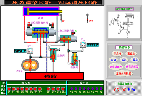 智能型液壓PLC控制實(shí)驗(yàn)臺(tái)具有開發(fā)測(cè)試分析系統(tǒng),通過對(duì)流量、壓力、功率、轉(zhuǎn)速、時(shí)間、溫度--計(jì)算機(jī)人機(jī)畫面
