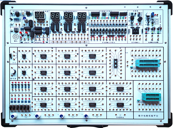 數(shù)字電路實驗箱由鋁木合金箱體、開關(guān)電源、常用信號源、實驗電路底板以及模塊化實驗電路板(標準化模塊)和實驗電路區(qū)組成。其中實驗電路區(qū)采用全開放模式,可根據(jù)需求靈活配置實驗電路,以滿足不同層次學生的教學實驗要求。