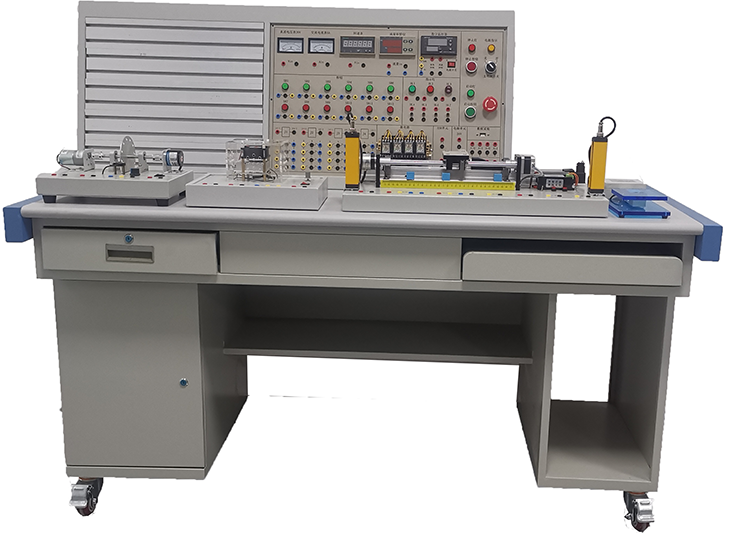 工業(yè)傳感器自動化綜合實訓臺由工業(yè)鋁型材構成面板,使用特殊的T型螺母固定,便于工藝單元和儀表的安裝。學生可以自己設計搭接系統(tǒng)。方便移動,需設置有四個帶剎車的輪子,便于移動和固定;帶抽屜和儲物柜。