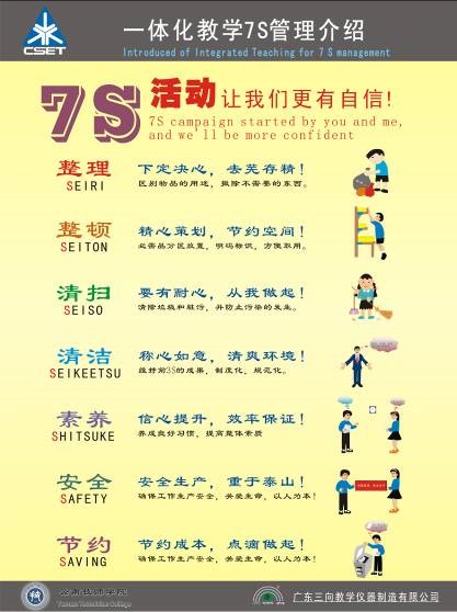 | 7S管理掛板 | 明確7S管理內(nèi)容提高學(xué)員自身素質(zhì)修養(yǎng)。 | 一體化各工作室 |