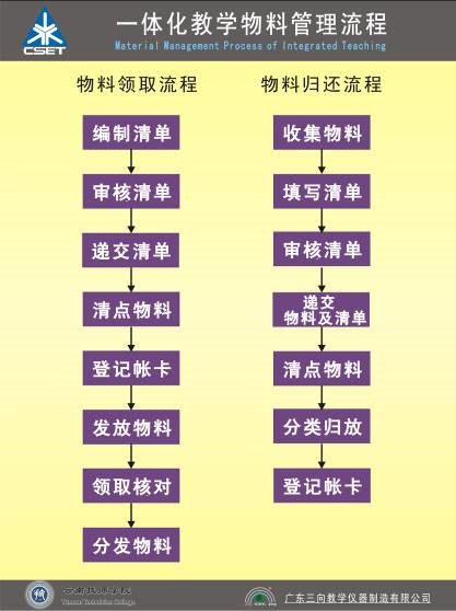| 流程掛板 | 明確物料管理流程,設(shè)備操作流程等。 | 一體化各工作室,物料管理間。 |