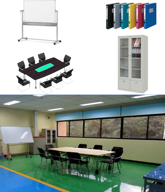 會(huì)議桌、會(huì)議椅、書架、基本文具、寫字板等