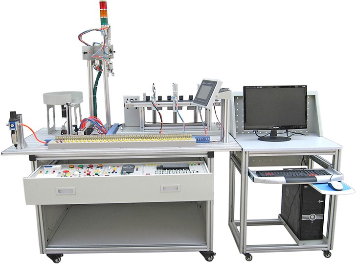 光機電一體化實訓裝置由鋁合金導軌式實訓臺、典型的機電一體化設備的機械部件、PLC模塊、變頻器模塊、按鈕模塊、電源模塊、模擬生產設備實訓模塊、接線端子排和各種傳感器、計算機等組成。整體結構采用開放式和拆裝式,機電一體化實訓裝置用于機械部件組裝,可根據現有的機械部件組裝生產設備,也可添加機械部件組裝其他生產設備,使整個裝置能夠靈活的按教學或競賽要求組裝具有生產功能的機電一體化設備。模塊采用標準結構和抽屜式模塊放置架,互換性強;按具有生產性功能和整合學習功能的原則確定模塊內容,使教學或競賽時可方便的選擇需要的模塊。設備需完全符合電工電子全國職業(yè)技能大賽所要求,同時還要求具有可拓展功能,可以組成更加大型的生產模擬系統,以配合各個用戶學校不同層次,不同專業(yè)的教學及培訓要求。
