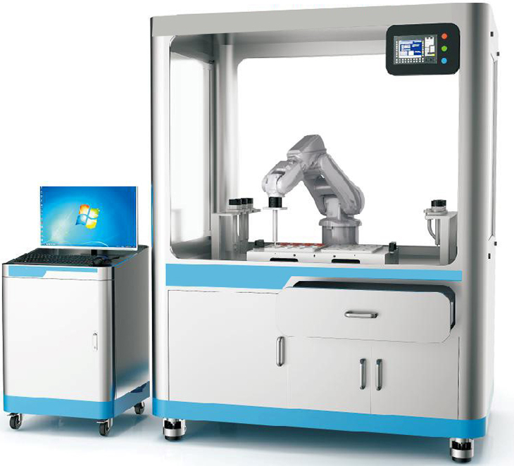 該裝備采用落地式的安裝形式,保證設備的穩(wěn)定可靠,同時采用多道防護裝置包含了有機玻璃防護墻、安全門(安全鎖)系統(tǒng)、安全光幕等硬性保護。以及設有虛擬邊界安全保護系統(tǒng)(沒有任何肉眼可視的傳感機構(gòu),機械手超出設置的邊界,自動停止運動進行安全保護)。