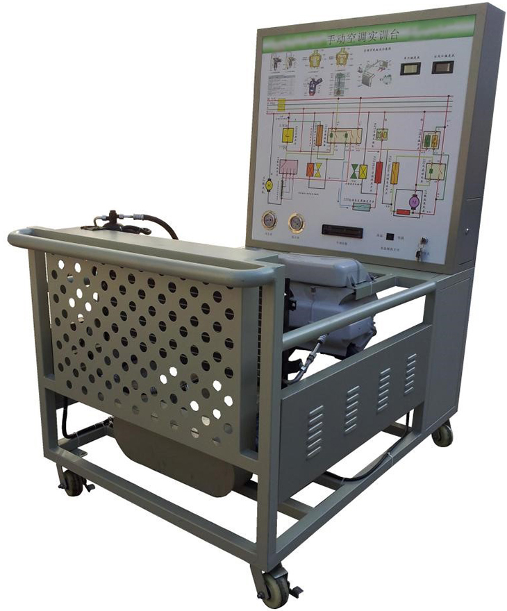 2.由三相電機做為動力源,帶動空調(diào)壓縮機工作。操作空調(diào)控制面板,可真實演示車輛空調(diào)系統(tǒng)的工作過程以及工作原理。