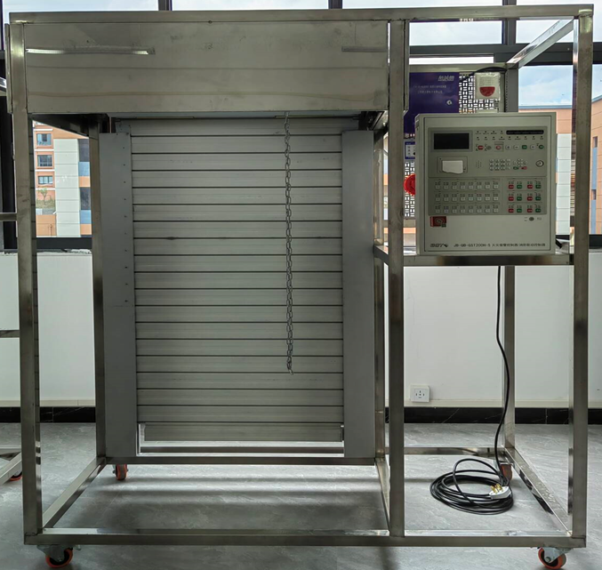 由模擬房間、卷簾門、卷簾門控制柜、火災(zāi)報警控制器、火災(zāi)探測器、以及相應(yīng)的聯(lián)動控制系統(tǒng)組成