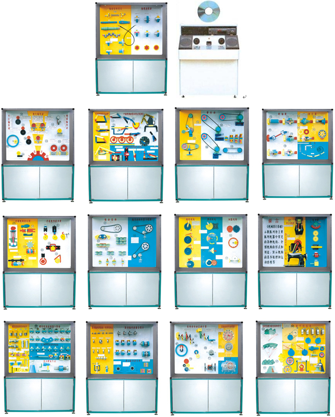 機械設計陳列柜根據(jù)全國技工學校機械類通用教材設計開發(fā)的《機械設計基礎(chǔ)》示教陳列柜是一套電化教學設備。本陳列柜共分十三個柜和一個電腦控制臺,聲控同步演示,采用單獨驅(qū)動由電腦或電子設備控制運轉(zhuǎn)嚴演示,可由DVD控制順序自動運行講解,又能根據(jù)教材、教學需要而遙控任意選擇還是單獨演示。模型材料采用進口有機板制造,板面附有高級寫真作必要的圖表和文字說明,演示形象逼真,運行可靠。是一套現(xiàn)代化機械課程教學設備。