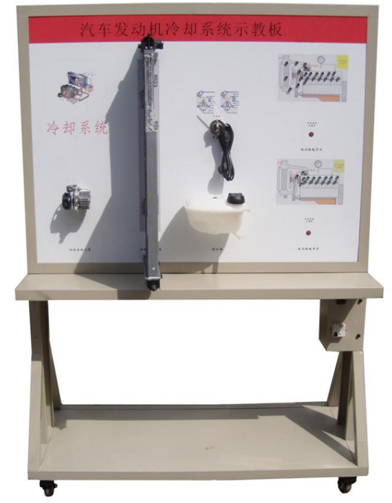 2.示教板面板采用耐創(chuàng)擊、耐污染、防火、防潮的高級鋁塑板,表面經特殊工藝噴涂底漆處理;面板打印有永不褪色的彩色電路圖與工作原理示意圖;學員可直觀對照發(fā)動機冷卻系統(tǒng)結構原理圖和實物,認識和分析發(fā)動機冷卻系統(tǒng)的工作原理。