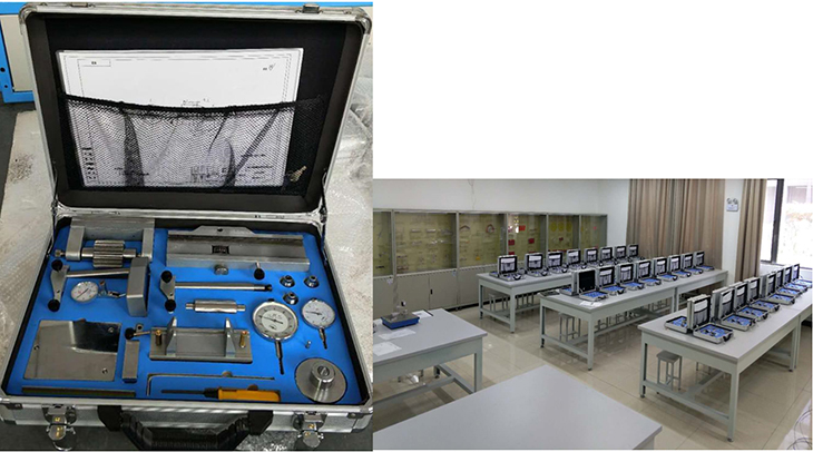 零件形位誤差測量組合實訓(xùn)裝置是根據(jù)《公差配合與技術(shù)測量》課程的基本教學(xué)要求,精心設(shè)計的一套零件形位誤差檢測組合訓(xùn)練產(chǎn)品。它由檢測零件、組合跳動儀、組合測微儀、配套圖紙及實訓(xùn)指導(dǎo)書組成。其目的是通過零件形位誤差的檢測,加深學(xué)生對形位誤差及形位公差基本概念的了解,掌握形位誤差測量的方法的技能,為公差配合在后續(xù)課程中的應(yīng)用奠定扎實的基礎(chǔ)。