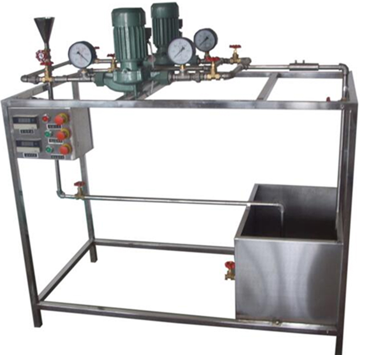 離心泵、蓄水箱、文丘里流量計、壓力表、壓差計、功率表、實驗管道、閥門、自循環(huán)裝置、不銹鋼框架。