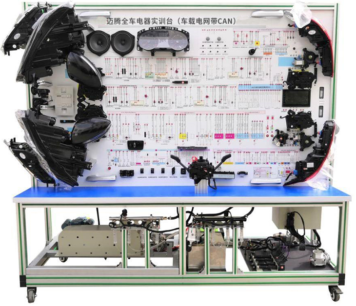 該設(shè)備采用 全新 邁騰B8L 2021款整車電器實物為基礎(chǔ),充分展示汽車發(fā)動機防盜系統(tǒng)、儀表系統(tǒng)、燈光系統(tǒng)、雨刮系統(tǒng)、喇叭系統(tǒng)、點火系統(tǒng)、電動車窗系統(tǒng)、電動門鎖、音響系統(tǒng)、起動系統(tǒng)和充電系統(tǒng)等汽車電器各系統(tǒng)的組成結(jié)構(gòu)和工作過程。