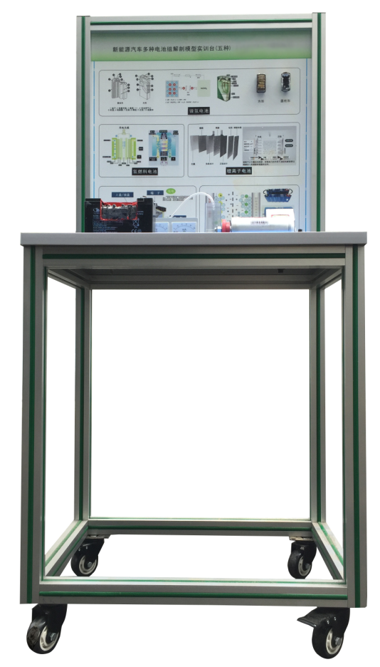 2.實(shí)訓(xùn)臺(tái)由可移動(dòng)臺(tái)架與原理面板組成,面板立放,繪制三維立體解剖結(jié)構(gòu)圖,介紹電池基本知識(shí),展示電池基本參數(shù)。
