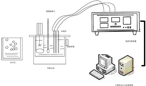 熱電偶實驗裝置主要由恒溫水浴、電位差計、熱電偶、熱電阻、冰點儀、數(shù)據(jù)采集裝置、低電勢轉換開關和標準玻璃溫度計等組成。恒溫水浴上具有攪拌、加熱與溫度控制裝置,可根據(jù)要求將溫度穩(wěn)定在設定值附近。采用標準玻璃溫度計測量的溫度作為標準溫度,用于校準熱電偶和熱電阻。