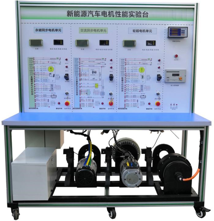 檢測控制面板(裝有各種檢測端子,1448×940mm彩色電路圖和工作原理示意圖)、組合儀表、點火開關、電機控制器、車載充電器與充電接口、DC-DC轉(zhuǎn)換器、鋰動力電池組、電動車電機(包含三種電動車常用電機:60V2.2KW3000rpm永磁同步電機,60V2.2KW3000rpm交流異步電機,60V2KW3000rpm直流無刷電機)、剎車開關、檔位開關、油門控制裝置、大電流繼電器、電源總開關、急停開關、輔助蓄電池(12V45AH)、電機性能檢測系統(tǒng)(數(shù)顯電壓電流表、轉(zhuǎn)速表、扭矩表、功率表、磁粉制動器、測試上位機軟件)、電機及扭矩傳感器與磁粉制動器連接器、SX-96B數(shù)顯表、一體化全鋁合金型材搭建的移動臺架(1500×700×1700mm 帶自鎖腳輪裝置,帶安裝檢測端子的原理面板,面板1448×940mm)、故障考核系統(tǒng)、設備操作說明書。