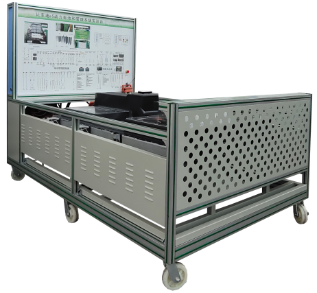 鋰動力電池組、電池管理系統(tǒng)BMS、BMS顯示屏(7寸觸摸屏)、維修開關、輔助蓄電池(12V45AH)、高壓配電箱、漏電傳感器、車載充電機、國標充電插座與充電槍、直流接觸器(包含充電繼電器、總正繼電器、總負繼電器、預充繼電器)、急停開關與電源總開關、一體化全鋁合金型材搭建的移動臺架(1500×700×1700mm