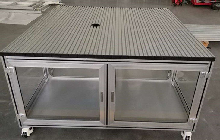 a)框架為高強度鋁型材結構,臺架四周采用優(yōu)質鋼板封閉,表面噴涂處理。