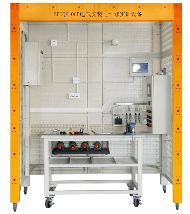 電氣安裝與維修實訓(xùn)設(shè)備,是根據(jù)工廠電氣安裝和室內(nèi)電氣安裝等維修電工和電氣安裝工實訓(xùn)鑒定要求,而開發(fā)的一種通用實訓(xùn)平臺。非常適合于各類職業(yè)院校和技工學(xué)校維修電工和電氣安裝工、其他有電氣安裝布置要求的專業(yè)的作為公共平臺使用。采用鋼制網(wǎng)孔板和鋼制專用型材組接而成,安裝有自鎖式腳輪,方便移動和使用。裝置表面噴塑,色彩穩(wěn)重。裝置配有專用電源臺。裝置設(shè)計高度以人站在一級人字梯即可方便操作的高度,既安全又能使使用者感受到施工現(xiàn)場環(huán)境。橫向、叢向?qū)挾群线m,可以模擬現(xiàn)場線路的轉(zhuǎn)向布置。網(wǎng)孔板可以方便拆下。為方便隱蔽工程施工,鋼制框架仿建筑隔斷用輕鋼龍骨的加大寬度精心設(shè)計,帶有穿管孔,使用扎帶固定線管,在穿出網(wǎng)孔板時可以使用壁疏引出導(dǎo)線穿入明裝底盒。配套的PVC管彎管器,可方便的對PVC管彎成90度?蛇M行電工安裝。如橋架安裝、PVC管安裝、吊燈、白熾燈座、日光燈、開關(guān)、插座、配電箱、控制箱等,裝置還包含有交流異步電動機、直流電動機、步進電機、、溫度控制器、電偶、PLC、變頻器觸摸屏等控制與受控對象。該系統(tǒng)每個操作組配套一可移動式工具車和元件柜,便于對元件的保管和安裝施工。從根本上解決了學(xué)校在普通墻面上進行的安裝培訓(xùn)的使用不方便、實訓(xùn)范圍窄的問題。具有組裝靈活方便的特點,可以根據(jù)學(xué)校的實際教學(xué)條件組成,2人組、單面、度組合是基于2個0.8米的基本組合單元,輔助配有0.2米、0.4米的組合單元,形成不同的長度組合,以滿足不同的教學(xué)場地?梢詾樗姲惭b工等有電氣安裝要求的各崗位群提供實訓(xùn)考核。