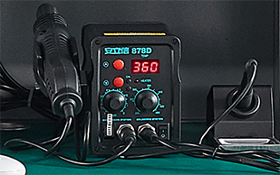 2、熱風(fēng)槍焊臺1套。包含熱風(fēng)槍1個,恒溫烙鐵和烙鐵架1套。