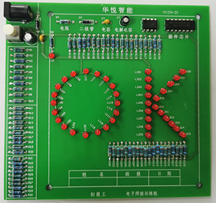 1)產(chǎn)品精選了常見的直插式元器件,包含直插式金屬膜電阻、直插式紅色發(fā)光二極管、直插式自鎖開關(guān)、直插式電源尾插、直插式無極性電容、電解電容,直插式二極管、直插集成芯片等電子元器件,搭建出LED燈牌的實際應(yīng)用環(huán)境,使學(xué)生能夠在一個真實的應(yīng)用環(huán)境中進(jìn)行理實一體實訓(xùn)操作。