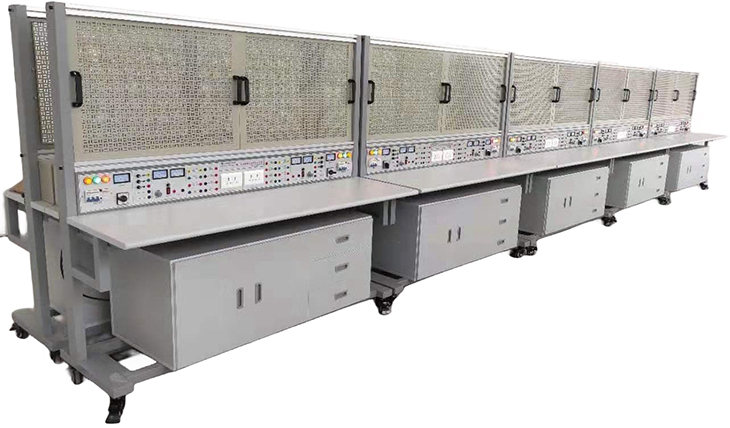 本實訓臺由實訓屏(內置電源)、實訓桌、實訓儲物柜三大部分組成。