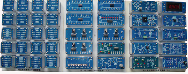 提供電工電子透明實(shí)訓(xùn)模塊,可以完成直流電路、模擬電子技術(shù)、數(shù)字電子技術(shù)和電子綜合應(yīng)用實(shí)訓(xùn)項(xiàng)目。實(shí)訓(xùn)模塊面板采用PCB板制作而成,器件和信號(hào)接口均已引至板上的專用插座,實(shí)訓(xùn)模塊有四個(gè)彈性插腳,與專用實(shí)訓(xùn)孔板配套使用。