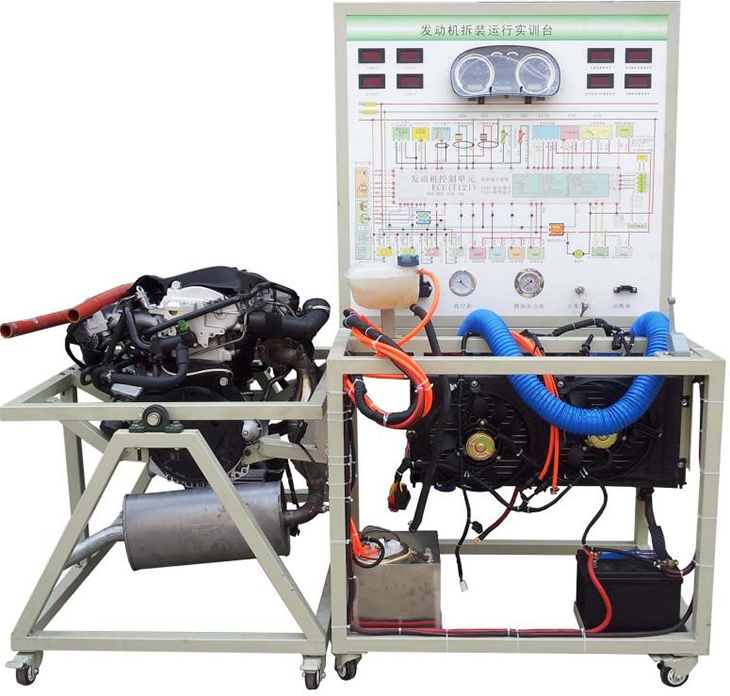 拆裝翻轉臺架由柴油發(fā)動機總成和可做360度翻轉的發(fā)動機拆裝架組成,運行檢測控制臺由控制面板、發(fā)動機電控單元、冷卻系統(tǒng)、供油系統(tǒng)、蓄電池等組成;